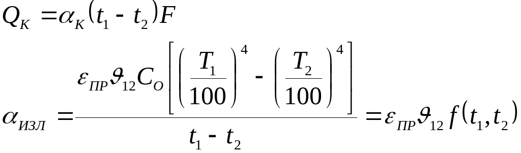 Введем представление о суммарном коэффициенте теплообмена, который учитывает конвекцию и излучение.