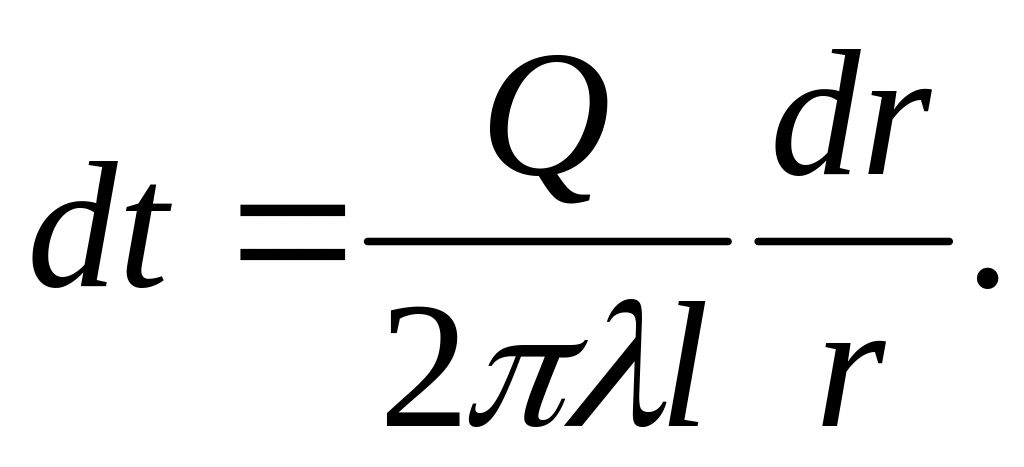 Следовательно, температурное поле здесь будет одномерным, а изотермические поверхности цилиндрическими, имеющими с трубой общую ось. Выделим внутри стенки кольцевой слой радиусом r и толщиной dr, ограниченный изотермическими поверхностями. Согласно закону Фурье количество тепла, проходящего в единицу времени через этот слой, равно: