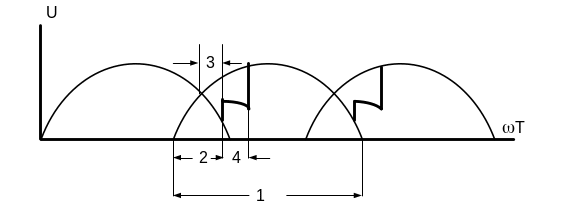 10. На рис. цифрами 1, 2, 3, 4 показані кути, які зв’язані з роботою ТП. Якою цифрою позначено кут комутації