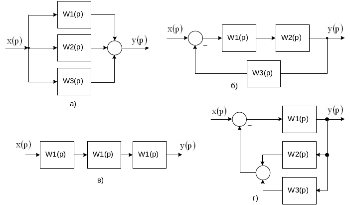 8. Вкажіть структурну схему, якій відповідає передавальна функція: