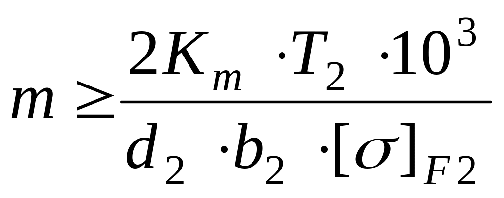 Определяем модуль зацепления m по допускаемым напряжениям изгиба