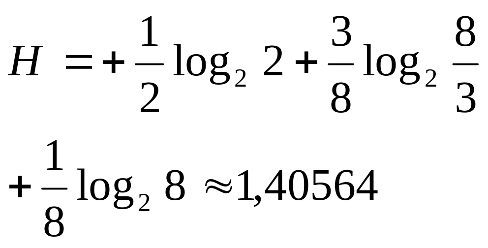 L= 1∙1/2+2∙3/8+2∙1/8=1/2+3/4+1/4=1,5 , где L-средняя длина сообщения.