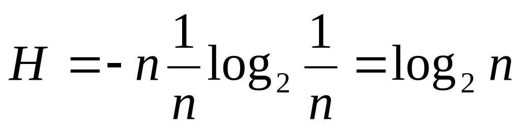 Докажем, что в случае равновероятных событий из формулы Шеннона можно получить формулу Хартли.