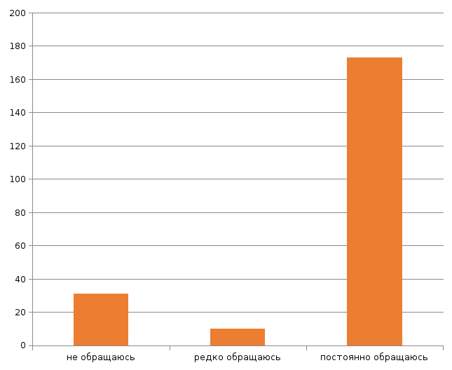 На первом этапе исследования экспертов просили ответить на вопрос о количестве обращений направленных ими в администрацию наукограда. Для оценки использовалась трехуровневая шкала с вариантами ответов: «не обращаюсь», «редко обращаюсь», «постоянно обращаюсь».