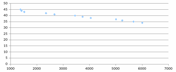 Рис.4.1. Кореляційне поле точок залежності обсягу збуту від ціни