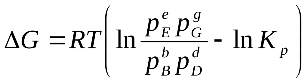 Заменив в уравнении (206) концентрации через парциальные давления (С = P/RT), а константу равновесия Кс через Кр, получим