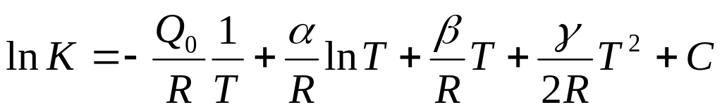 d ln К = Q0 dT/RT2 + αdT/RT + βdT/R + γT dT/R.