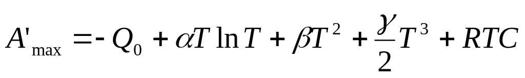 Для вывода уравнения A'mах = φ(Т) воспользуемся уравнением константы равновесия (219) и работы в функции от температуры (214).