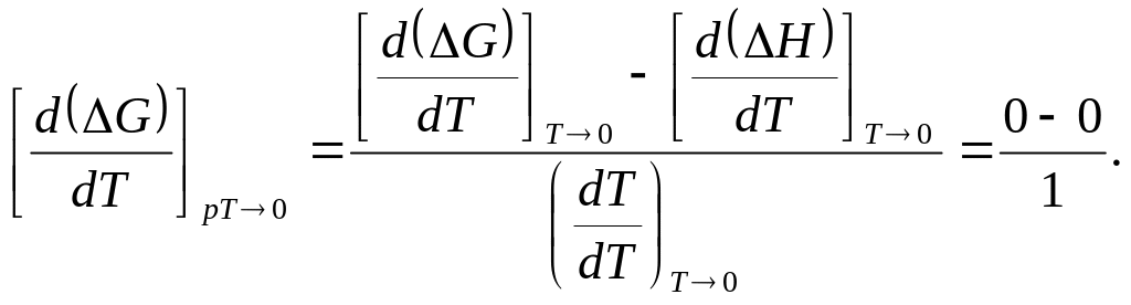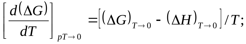 Для проверки этого предположения найдем из уравнений Гиббса— Гельмгольца (122) [ д (ΔG)дT]p при Т → 0: