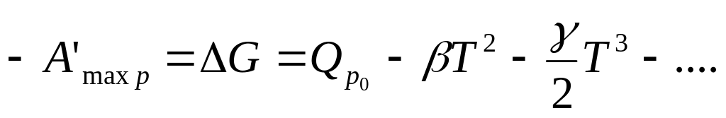 -A'maxp = ΔG = Q0 - αT ln Т - βT2 - γТ3/2 - RTC,