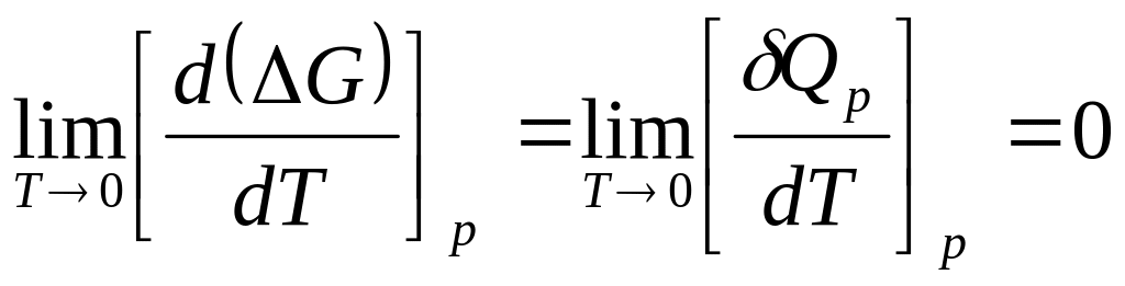 Экспериментально установлено, что при очень низких температурах свойства, конденсированных тел перестают зависеть от температуры. Поэтому общая касательная кривых функций Qp = f (T) и ΔG = φ (Т) должна идти параллельно оси температур: