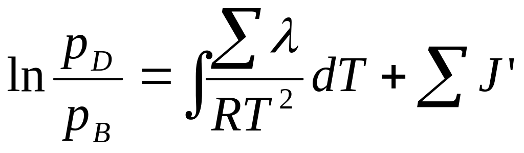 где ΣJ' = J'D + J'B — алгебраическая сумма констант интегрирования в уравнениях упругости пара для газов, т. е. сумма истинных химических констант этих газов. Значения химических констант определяются теоретическим или экспериментальным путем.