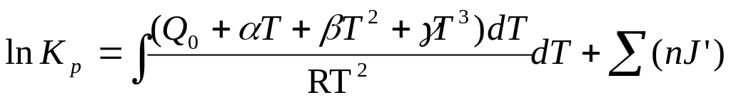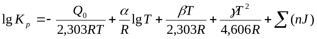 Если принять зависимость теплоемкости от температуры вида μc = а, то уравнение для определения константы равновесия имеет вид