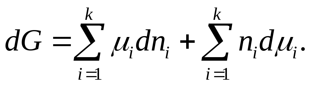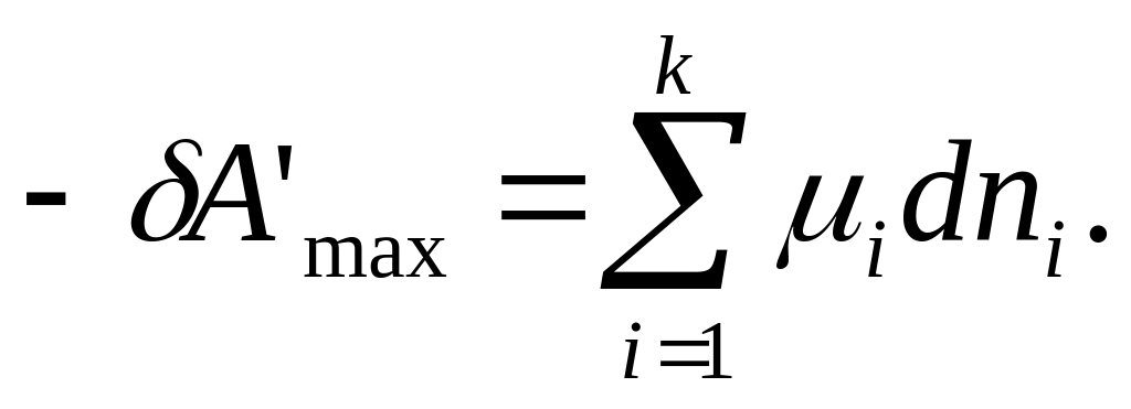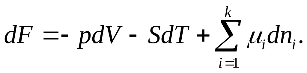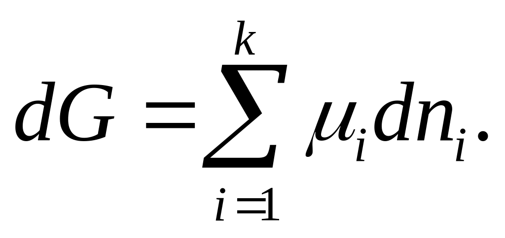 Тогда алгебраическая сумма произведений химического потенциала каждого данного вещества на изменение числа киломолей этого вещества μ1dn1 + μ2dn2 +… μkdnk