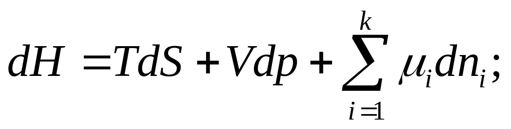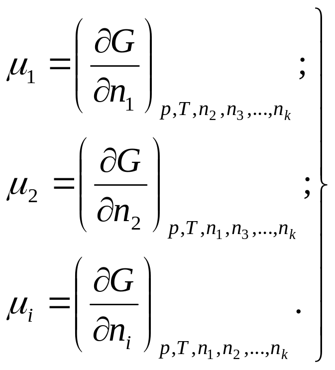 В общ м случае химический потенциал любого t-ro компонента является функцией состава системы и условий существования системы, например μi = f (p, T, n1 n2, ..., nk).