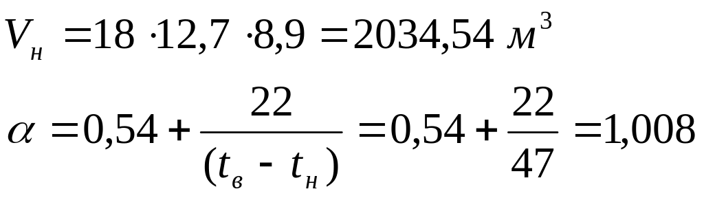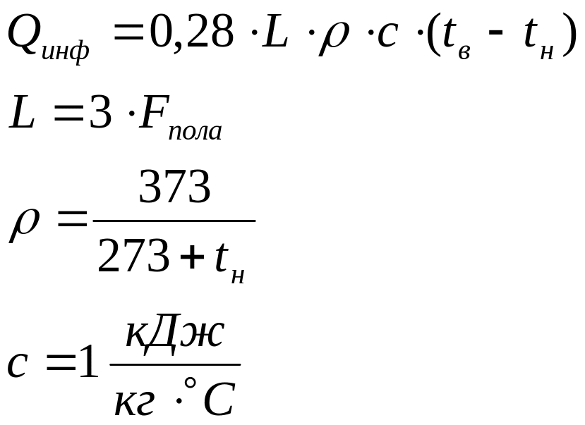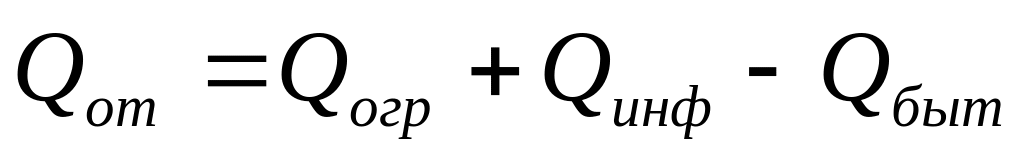 Qинф – количество теплоты, потребное для нагрева инфильтрационного воздуха, Вт