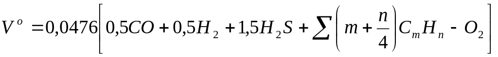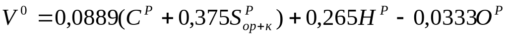 - •Теоретический и действительный объемы воздуха для сжигания топлива