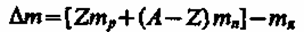 называется дефектом массы ядра. На эту величину уменьшается масса всех нуклонов при образовании из них атомного ядра.