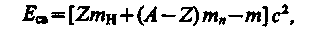 где тр, тn, тя - соответственно массы протона, нейтрона и ядра. В таблицах обычно приводятся не массы т, ядер, а массы т атомов. Поэтому для энергии связи ядра пользуются формулой