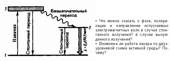 Однако спонтанные переходы носят случайный характер, и спонтанно рождающиеся фотоны испускаются в разных направлениях.