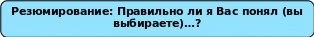 После сбора информации о потребностях Покупателя, необходимо дать ему понять, что Ты правильно его понял – сделать резюмирование его потребностей или произвести «проверку понимания».