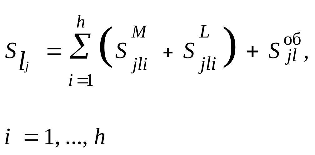 SMjli – затраты на материалы на i-й операции, обеспечивающей j-ю функцию для l-й основной; SLjli – затраты на заработную плату на i-ю операцию по соответствующим функциям; Sобjl – затраты, связанные с эксплуатацией оборудования при реализации j-й функции; h – операции технологического процесса |