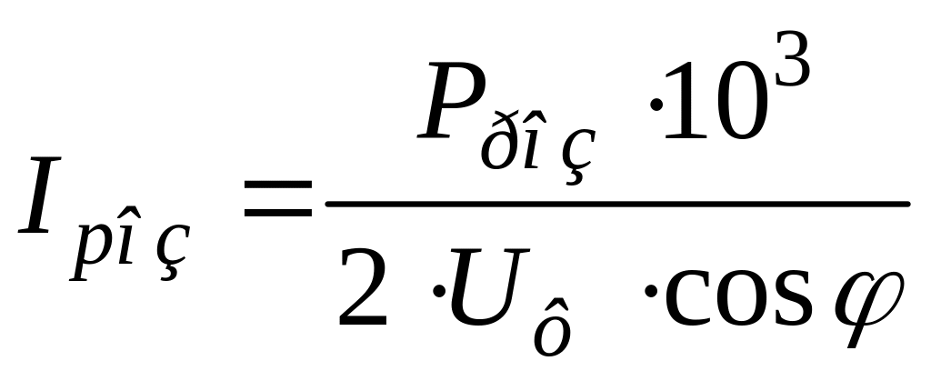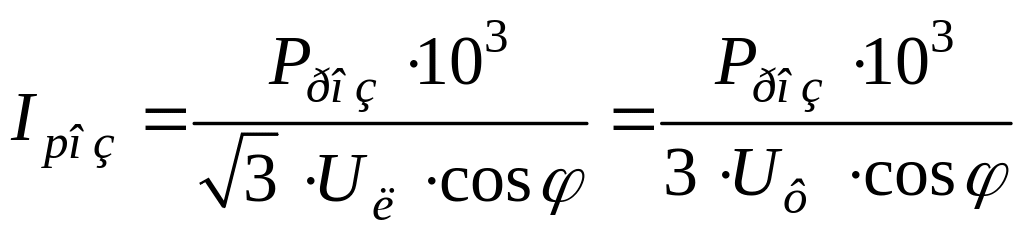 Для проведення порівняння необхідно визначити максимальний розрахунковий струм кожної ділянки освітлювальної мережі. Розрахунковий струм в залежності від системи виконання мережі визначається виразами: