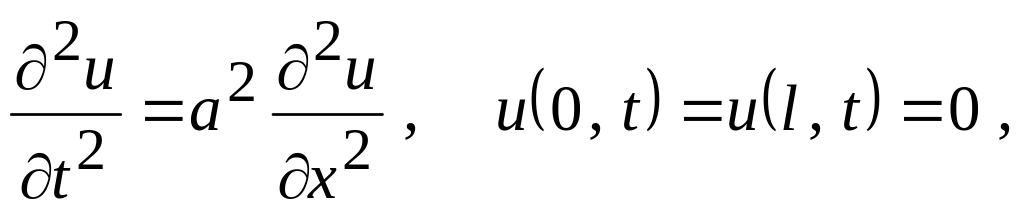 Рівняння вільних коливань струни, закріпленої на кінцях: