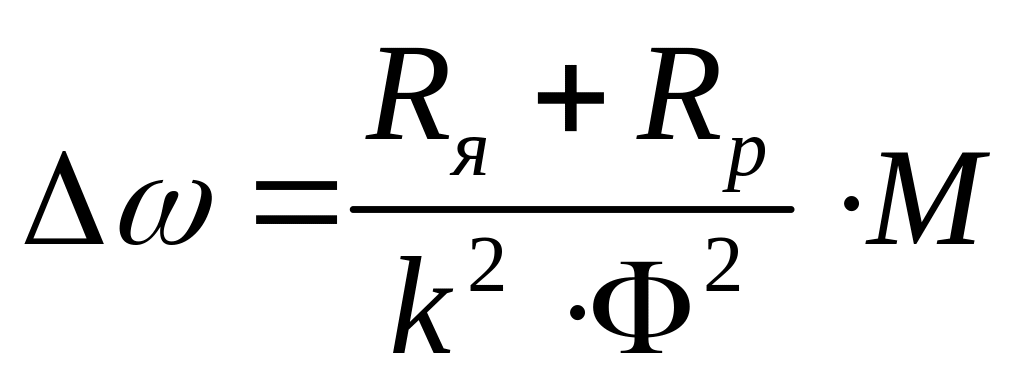 Қосымша кедергі Rқ якорь тізбегіне қосылған кезде жылдамдықтың төмендеуі: