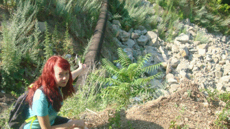 Т.1. Копаница Д. указывает на частично засыпанный крупным бутом цирк оползня, который произошел в 2011 году в Рыбацкой балке. Видно вымывание засыпанных глинистых частиц.
