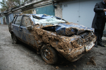 Поврежденая ВАЗ 21099, гараж которой попал под оползень, ноябрь 2011 года.