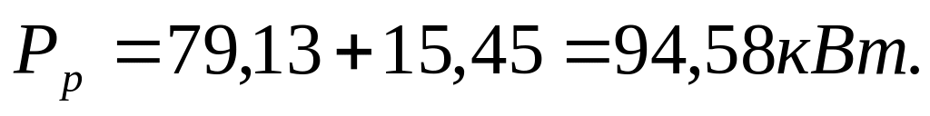 Мощность Рр , кВт, соответствующая силам резания на исполнительных органах, составит
