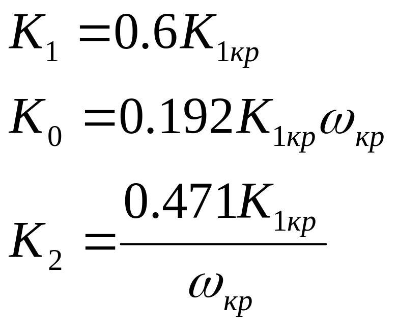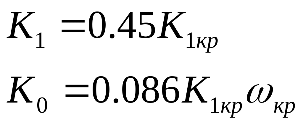 К1кр – критическое значение коэффициента передачи П-регулятора, при котором система находится на границе устойчивости. Значение К1кр можно определить экспериментально или по АЧХ объекта регулирования: