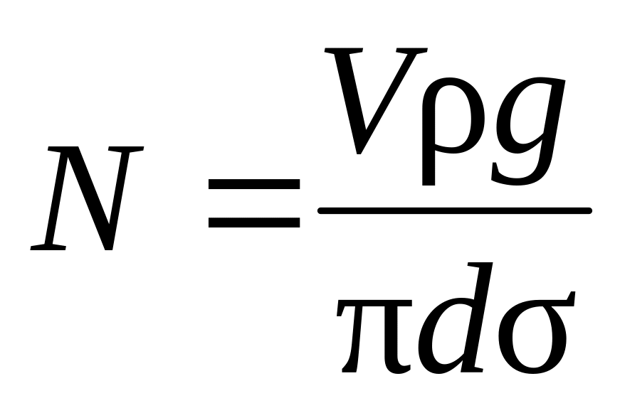 Дано: V=6·10-6 м3 d=10-3 м =73·10-3 Н/м =103 кг/м3 N - ? |