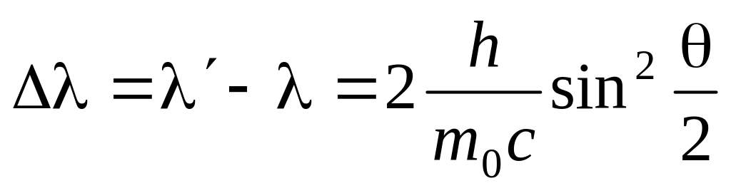 где – длина волны фотона, встретившегося со свободным или слабосвязанным электроном; / – длина волны фотона, рассеянного на угол после столкновения с электроном; т0 – масса покоящегося электрона.