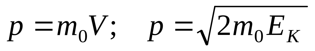 Импульс частицы и его связь с кинетической энергией ЕК: