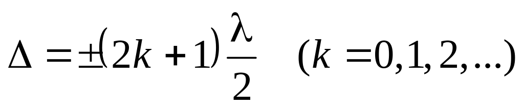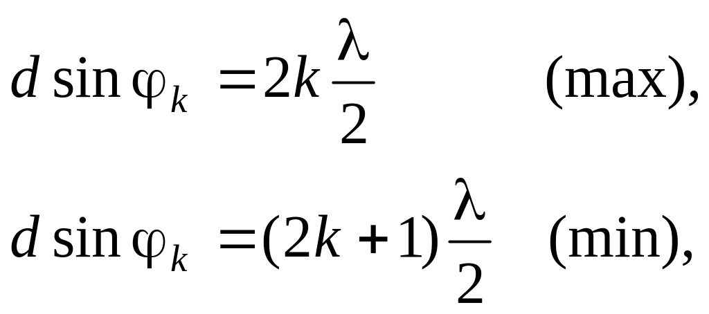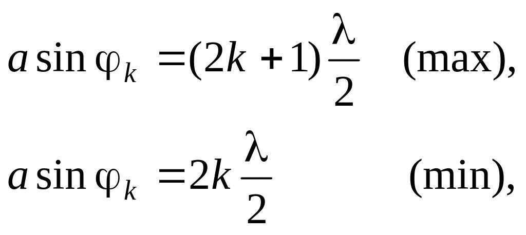 где а – ширина щели; k – угол отклонения (угол дифракции) лучей, соответствующий максимуму или минимуму.