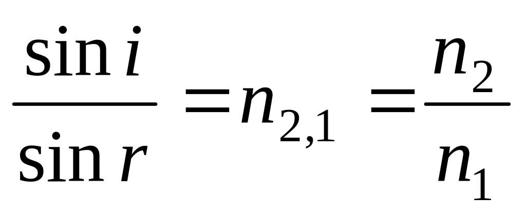 где i и r – углы падения и преломления световых волн; п2 и п1 – абсолютные показатели преломления второй и первой среды.