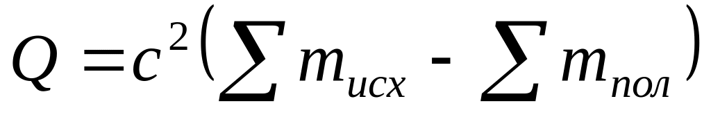 где с – скорость света в вакууме; тисх – сумма масс исходных ядер; тпол – сумма масс продуктов реакции.