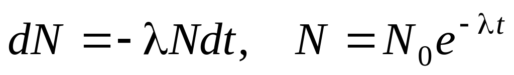 где dN – число ядер, распавшихся за интервал времени dt; N – число ядер, не распавшихся к моменту времени t; N0 – число ядер в начальный момент (t = 0); – постоянная радиоактивного распада.