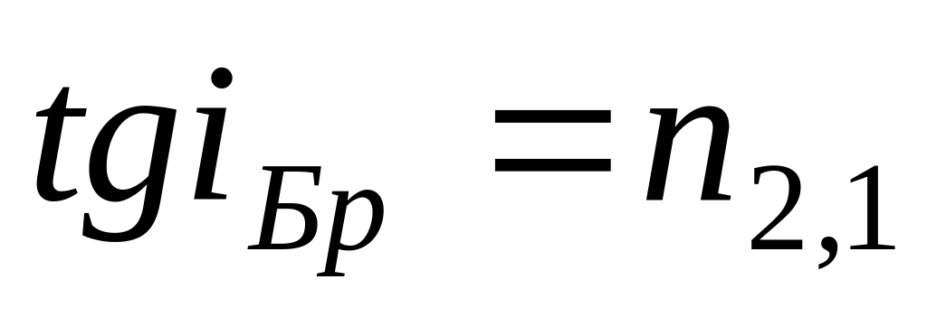 где iБр – угол падения, при котором отраженный луч полностью поляризован (угол Брюстера); п2,1 – показатель преломления второй среды относительно первой.