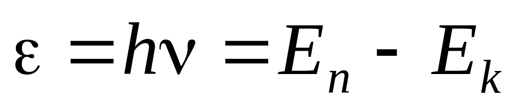 где = h – энергия излученного кванта; – частота излучения при переходе с п-й орбиты на k-ю орбиту (п > k); Еп и Еk – энергии электрона на этих орбитах.