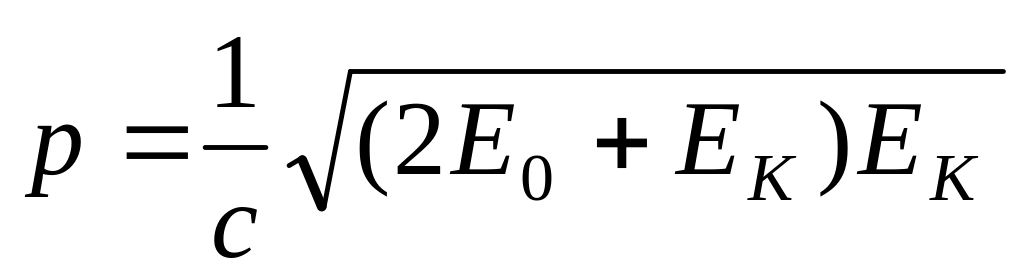 где с – скорость света в вакууме; Е0 – энергия покоя частицы (Е0 = т0с2); ЕК – кинетическая энергия частицы.