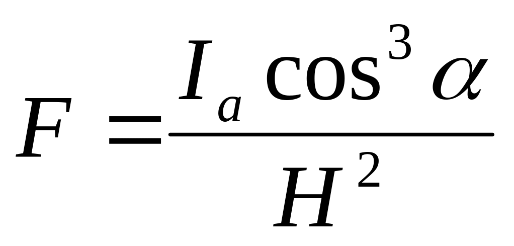 Угол τ, необходимый для создания в заданной точке нормируемой освещенности Ен при коэффициенте запаса К, можно вычислить по формуле