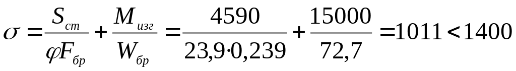 Суммарное напряжение в стреле из условий устойчивости
