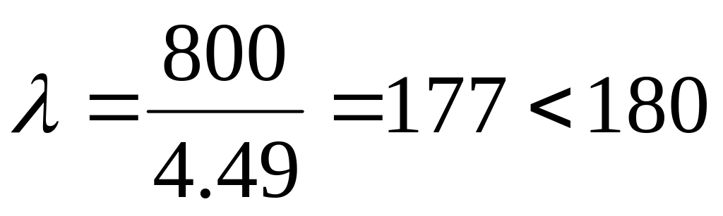 По ГОСТ 8732—58 принимаем трубу диаметром DH =133 мм, толщина стенки σ = 6 мм. Площадь сечения трубы Fбp = 23,9 см2, момент сопротивления Wвр = 72,7 см3, радиус инерции rx =4,49 см, вес 1 м трубы 18,79 кг. Проверяем выбранный диаметр трубы. Гибкость трубы: