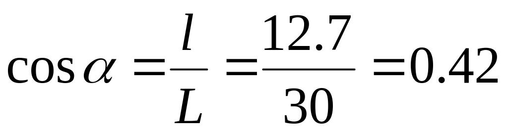 Горизонтальная проекция стрелы составит: l=14,5—1,8=12,7 м. Угол наклона стрелы к горизонту может быть определен из выражения