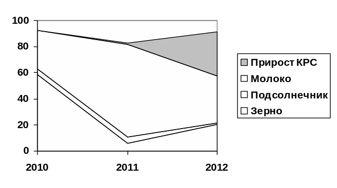 Мал. 2.3. Структура товарної продукції в СТОВ «Дружба народів» за 2010-2012 рр.