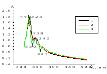 Для них характерен один мощный максимум оптической плотности в области длин волн 310 – 330 нм. Причем большая гомогенизация среды наблюдается для гелей, помещенных в короткозамкнутую электрохимическую ячейку. Понятно, что это связано с дополнительным электрофоретическим перемешиванием гелевой среды на фоне флексомагнитных воздействий [11], которые наблюдаются только для оксигидратов, помещенных в постоянные магнитные поля. Причина этого – пульсационно - шумовое движение ДЭС гелей оксигидратов (пульсирующие силы Лоренца) в магнитном поле. На основе предыдущих исследований [7, 13] можно полагать, что упрощение спектров поглощения связано именно с серьезной гомогенезацией оксигидратной системы в данном случае.