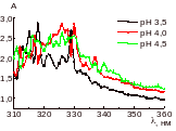 Итак, количество максимумов и их положение на спектрах не зависит от значения рН, но определяется концентрацией кремния в исходных растворов.